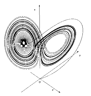 この現象を3つの連立方程式にまとめたのが、最初のカオスモデルである。
