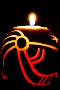 炎に視線を移すと・・・なにかが笛をふいて、踊っていた。
