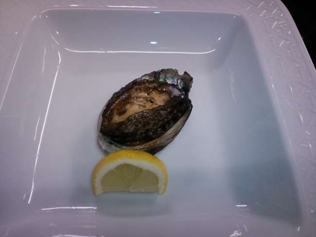 本州のあわびが型が大きいのに対して、北海道の蝦夷あわびは小柄ですね。でも北海道の荒磯で鍛え上げられたせいか、身のしまり、食感がすごい。プリンプリンでした。どんな手間かけて焼いてくれたのか…一度この歯ごたえを知るともう病みつき間違いなしです。完璧なまでに繊細かつ絶妙な食感と、深く甘い味わいは、まさに大自然が作り出した最高傑作です。